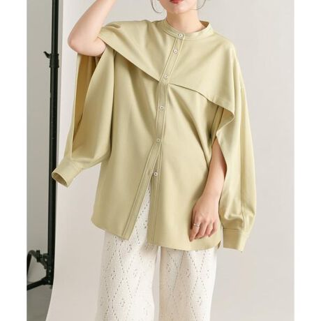 身頃〜袖に繋がったヨークデザインが特徴的な1着。着ていただくと自然なドレープ感が生まれ、モードな着こなしが叶います。袖部分はスリット仕様なので、気分によって腕を出したスタイルも可能です。寒い時期にも嬉しい程良く厚みのある素材にも注目。合わせるアイテム次第できれいめコーデも叶います。