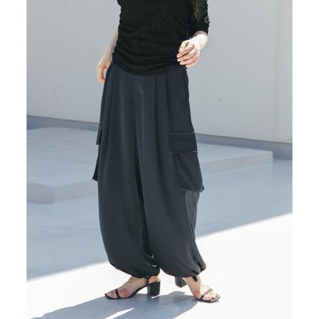 【上品な光沢が魅力のサテンカーゴパンツ】