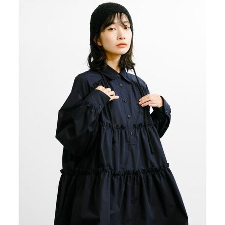 ミニフリルとギャザーを取り入れることで、360度どこから見ても女性らしく仕上げたワンピース。甘さたっぷりのワンピースながらも、レギュラーカラーや前立てを付けることで、すっきりとした印象にもしてくれます。裾のみボリュームたっぷりなバルーンシルエットもこだわりのポイント。フェミニンさをUPさせるPINK、取り入れやすいOFF&NAVYをご用意しました。