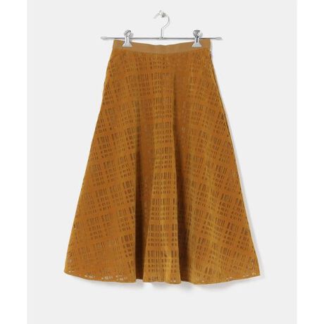 チェック柄のレースにフロッキー加工を施した特徴的なスカート。起毛感のある素材やカラーリング、着丈の長さ、全てが絶妙な大人っぽさを演出◎ブラウスはもちろん、ニットもハマる1着は、これから長いスパンで活躍すること間違いなし!