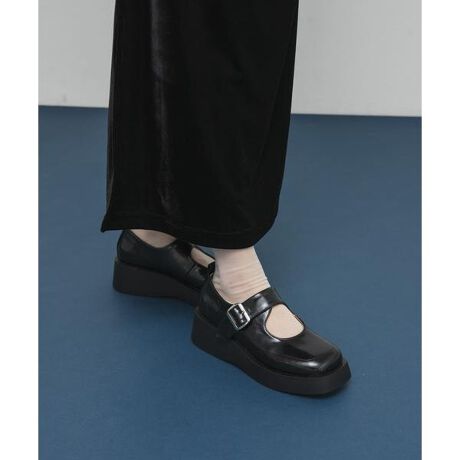 ホールド感が叶うストラップと、つま先のスクエア型がモードな印象を与えるメリージェーンシューズ。オリジナルのソールは軽量で歩きやすいところがポイント。パンツスタイルにプラスし抜け感を出したり、ワンピースやスカートでフェミニンにしたり様々な着こなしが楽しめます。また、ソックスを合わせていただくとシーズンレスに使用いただけます。