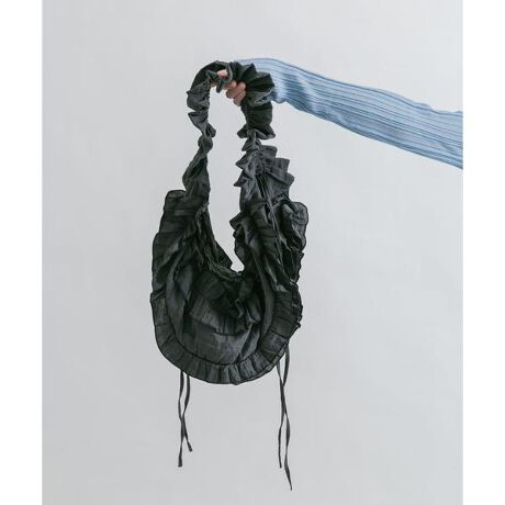 いつもの着こなしにプラスするだけでお洒落見え&鮮度UPなスタイルが叶うアイテム。立体感のあるフリルデザインが程良い甘さを醸し出し、薄手のナイロン生地にすることでカジュアル要素も取り入れました。手持ちのみならず斜め掛けしても可愛く、持つだけでトレンドらいくなコーデが完成。