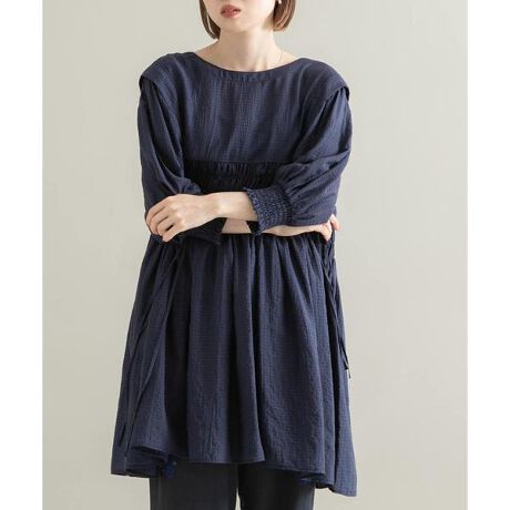 胸元のシャーリングが特徴的なミニワンピース。肩にタックを入れることできっちり感も出しつつ、程良くゆったりとしたサイジングは体型カバーを叶えます。柔らかめでボリュームがあり、表面感のあるシアー素材を使用したことで夏まで大活躍な1着に仕上げました。