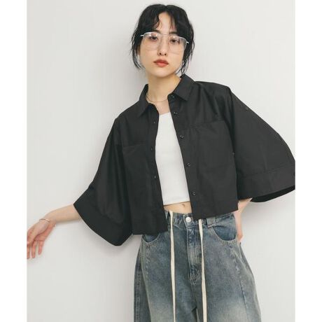 【ワイドな袖が特徴的なクロップド丈シャツ】