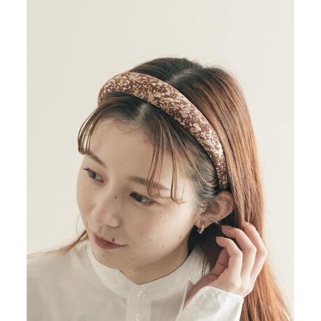 トレンドのぷっくりフォルムに仕上げたプリントカチューシャ。