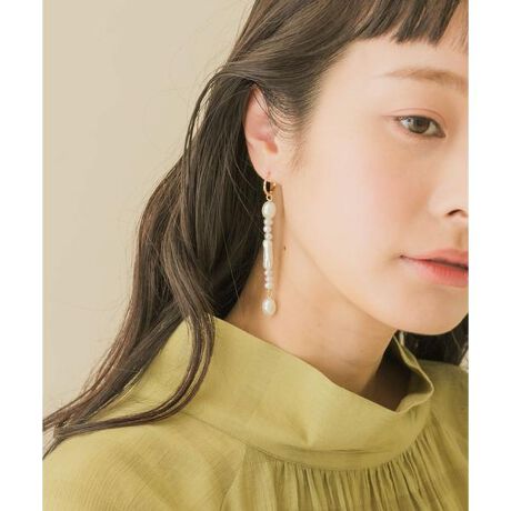 ユーモアなシルエットが特徴のミニサイズのバロックパールを繋ぎ合わせたロングデザインのピアス。