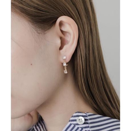 スクエア型にカットしたミニサイズのクリアビジューをチェーンで繋ぎ合わせたイヤリング。