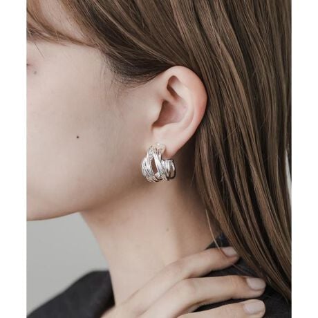 華奢なメタルラインを重ね合わせてボリュームを出した、ワイドながら繊細さのあるルックスのイヤリング。