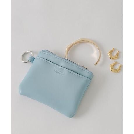 大人っぽいフェイクレザーの質感にSMELLYのワンポイントロゴがアクセントになったミニポーチ。