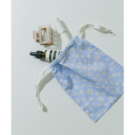 どこか懐かしさのあるレトロなプリントが可愛い巾着ポーチ。