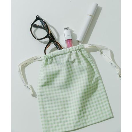 どこか懐かしさのあるレトロなプリントが可愛い巾着ポーチ。