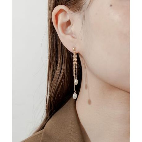 チェーンの揺れ感と、ミニパールの組み合わせが好バランスなピアス。