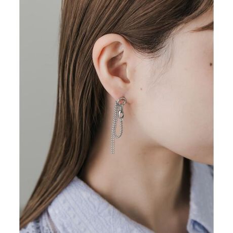 二種類のチェーンが組み合わさり、耳たぶから落ちるようなデザインのロングピアス。