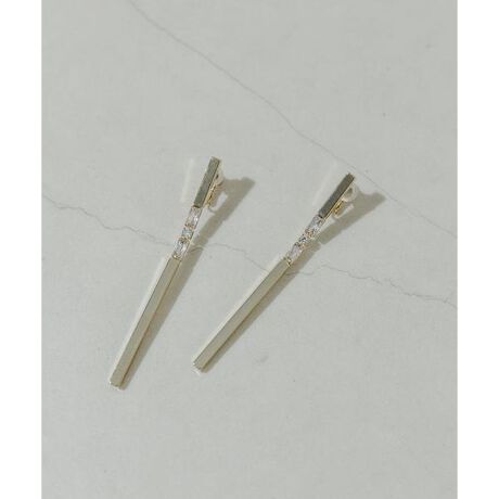 スクエアシルエットのスリムなメタルバーでビジューをサンドした独特なデザインが目を引くイヤリング。