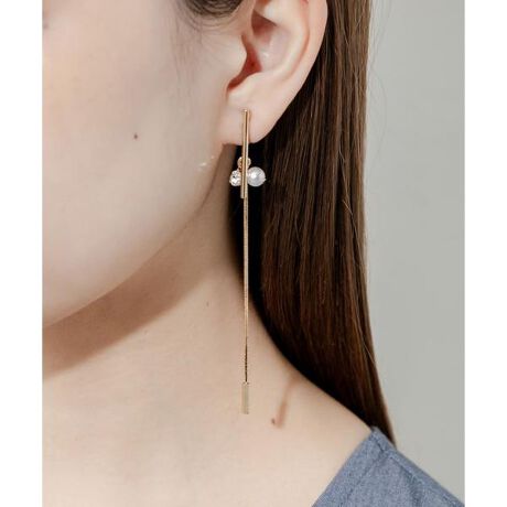 メタルバーにチェーンが垂れ下がり、揺れるシルエットが魅力のロングイヤリング。