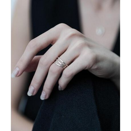 この1点でも重ね付け風の雰囲気をお楽しみいただけますが、手持ちのリングと組み合わせていただくのもおすすめです。