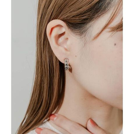 ぷっくりとした丸みのあるハートモチーフをいくつも重ね、フープ状のイヤリングに仕上げました。