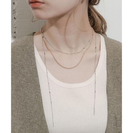 シンプルなチェーンネックレスとネック部分にぐるりと巻き付けたようなロング調のネックレスの2セット。