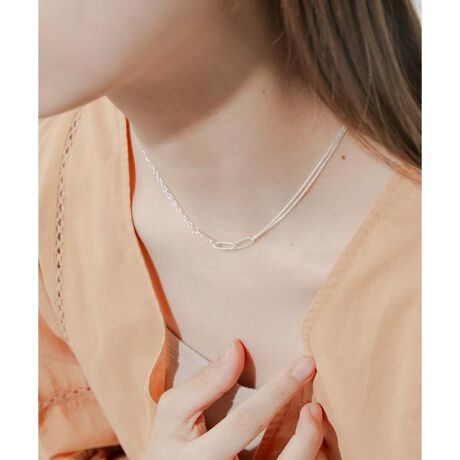 異なる種類のチェーンをつなぎ合わせたデザイン性あるネックレス。