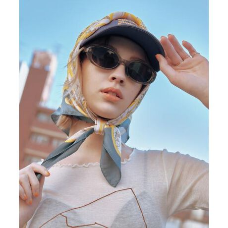 今年注目のオーバル型のフレームが特徴のサングラス。