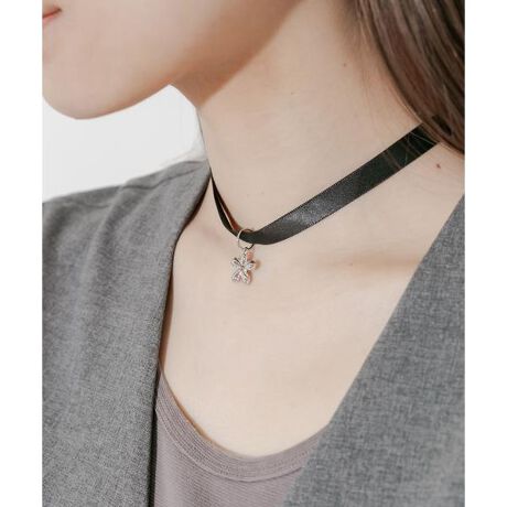 柔らかな質感のリボンが、首元に優しくフェミニンな印象を与えるチョーカー。