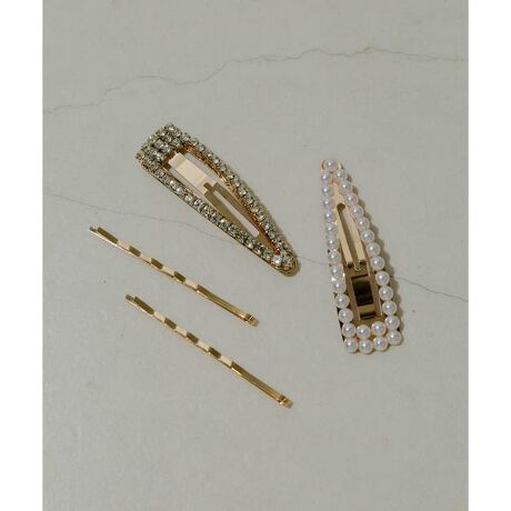 組み合わせを楽しめるヘアピンを4点セットでご用意。パールやビジューがヘアピンの上にぎっしりと敷き詰められ、キラキラと輝いて目を惹くアイテム。