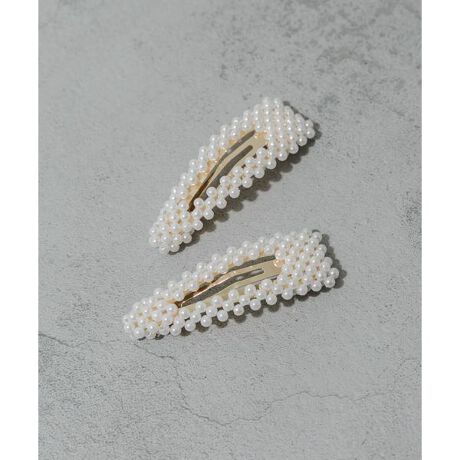 大きめのヘアピンに、小粒のパールをぎっしりと並べた華やかなアイテム。