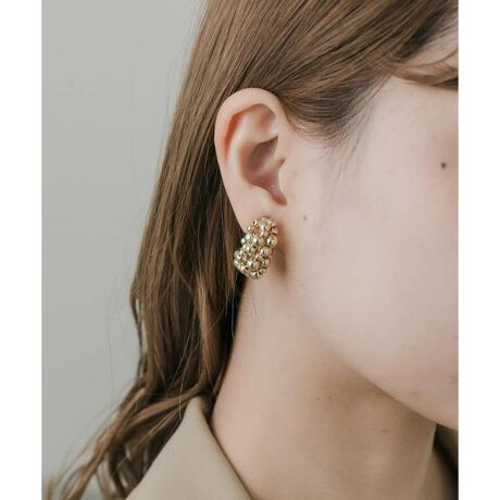 つぶつぶとしたメタルボールが密集したモチーフのイヤリング。