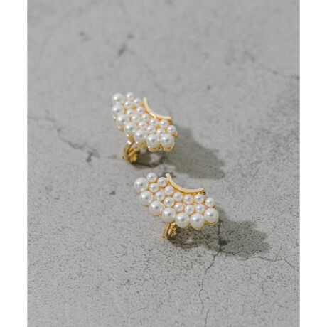 小粒のパールを、扇形にぎっしりと敷き詰めた華やかなイヤリングです。