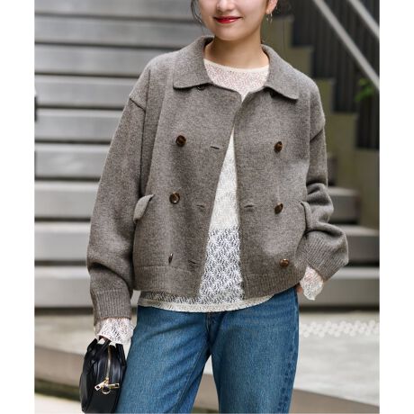 ダブルでクロップドの着丈が新鮮で、一枚ではもちろん、シャツとレイヤードもおすすめスタイリングです。