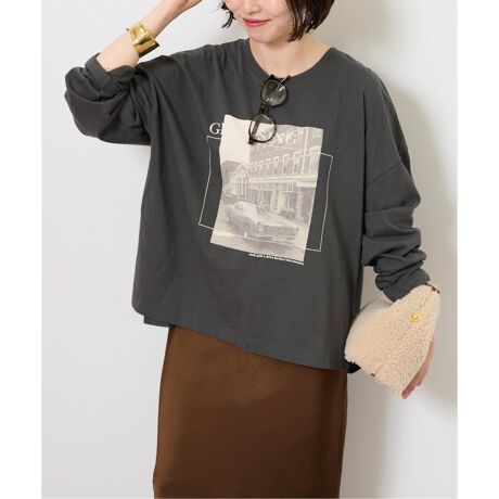 ◆セピアカラーのフォトプリントで大人に着こなせるロングスリーブTee