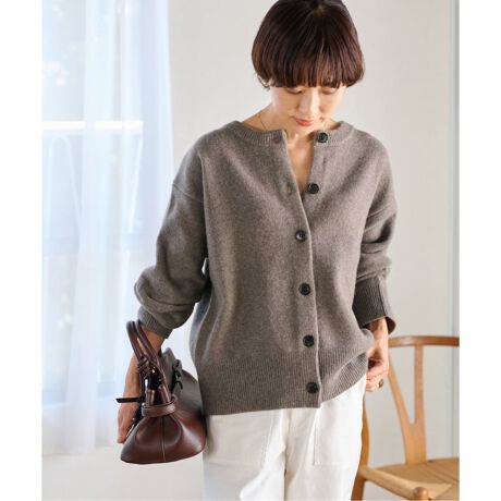 ウールカシミヤ2WAYクルーネックカーディガン