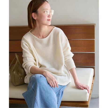 ◆ゆるやかなボートネックが程よい抜け感をプラスしてくれるニット