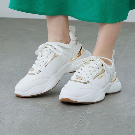 HIMIKOから上質な本革素材を使用した、履くほどに足に馴染むハイクラススニーカーが新登場。ふっくらと丸みのあるボリュームソールがスポーティーながら女性らしさを演出するデザインです。