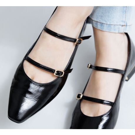 足元に華を添えるダブルベルトのメリージェーンパンプス。