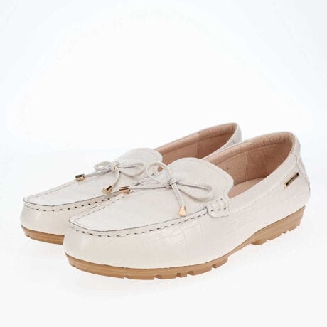 ボディ部分は柔らかなクロコの型押しレザーを使用し、2E相当の幅ゆったりめの木型で履き心地も◎。モカ部分は職人がひとつひとつ手縫いで作成し、履くたびに足にぴったり馴染みます。