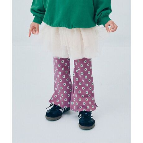 コーディネートのポイントになる花柄とロゴボーダー柄。