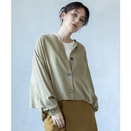 [型番:700006-324B]インナーを選ばないシンプルなフロントに対し、バックギャザーとレイヤードされた袖のデザインが印象的。羽織として着るスタイルがオススメ。===========================透け感: 僅かにあり(L.BEIGE)伸縮性: なし光沢感: ほぼなし裏地: なし素材について: 表面にナチュラルなシワと織のあるブラウス地===========================