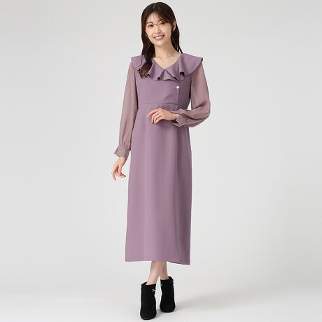 2025秋冬新作 ラッフルアシメフリルラップ風タイトワンピース