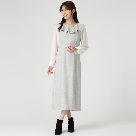 2025秋冬新作 ラッフルアシメフリルラップ風タイトワンピース