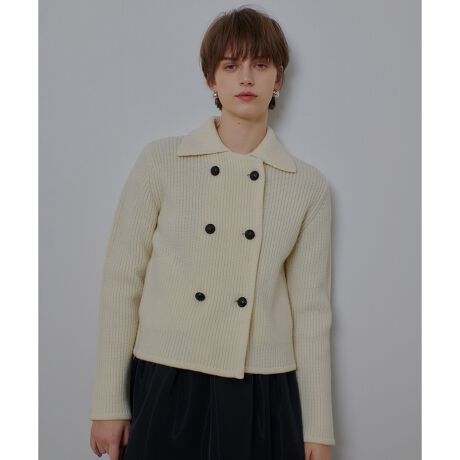 コンパクトなWブレストジャケットの形をニットに落とし込みました。