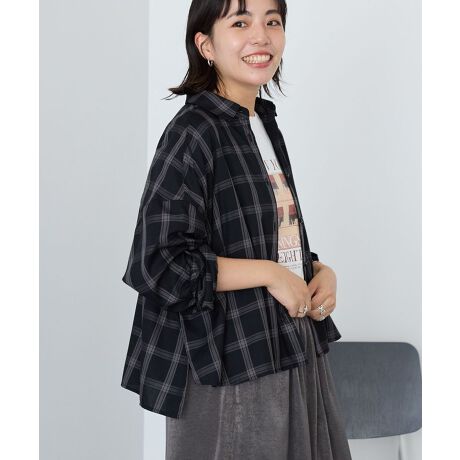 長袖シャツ チェックシャツ 秋シャツ カジュアルシャツ オーバーサイズシャツ レディースファッション ゆったりシルエット デイリーコーデ 大人カジュアル 短め 20代 30代 40代 秋冬 25AW AMERICAN HOLIC アメリカンホリック アメホリ