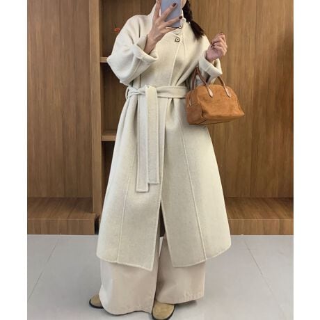 【BANICO】スタンドカラー ベルト付きウールロングコート