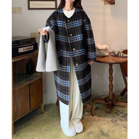 モダンとクラシックが共存するチェック柄ウールコート。リバーシブル仕様で表裏を使い分けることでシンプルにもカジュアルにも