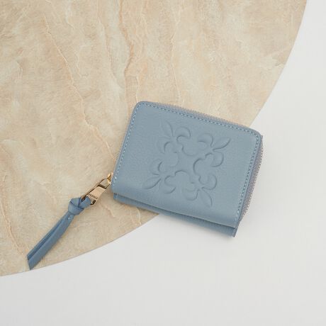 モノグラムのエンボスが印象的な、コンパクトサイズの三つ折りウォレット。