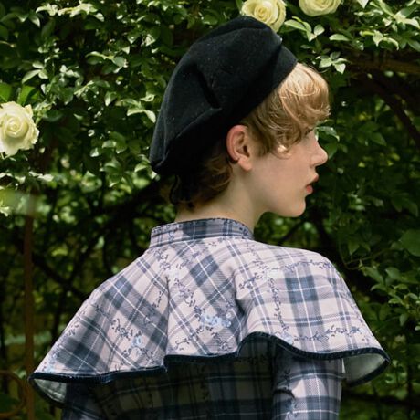 レトロチェック柄がキャッチーで目を惹くベレー帽?