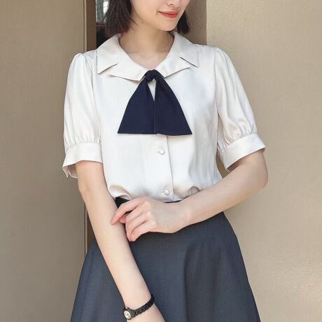 スカーフタイと変形衿がとびきりレトロなブラウス。