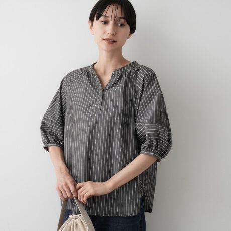 ふんわりシルエットと抜け感のあるスキッパー襟がポイントのブラウスです。