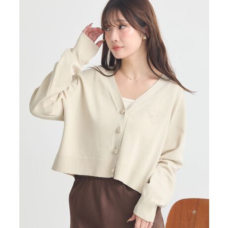 レーヨンベースで仕立てた着心地優しいニットカーディガン。胸元に施したロゴ刺繍にクラシカルなメタルボタンがアクセントを加えるフェミニンな雰囲気が魅力です。ゆったりワイドなお袖に対し、短丈のコンパクトなフォルムが今年風。様々なボトムと合わせていただける使い勝手の良い一枚です。