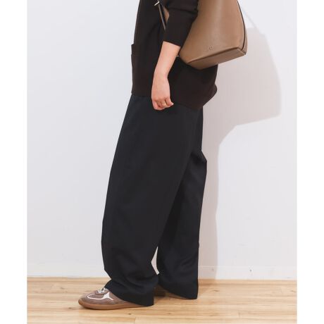 サラッと滑らかなウール素材が上品でキレイ目見えするパンツは股下深めのルーズなシルエットがポイント。